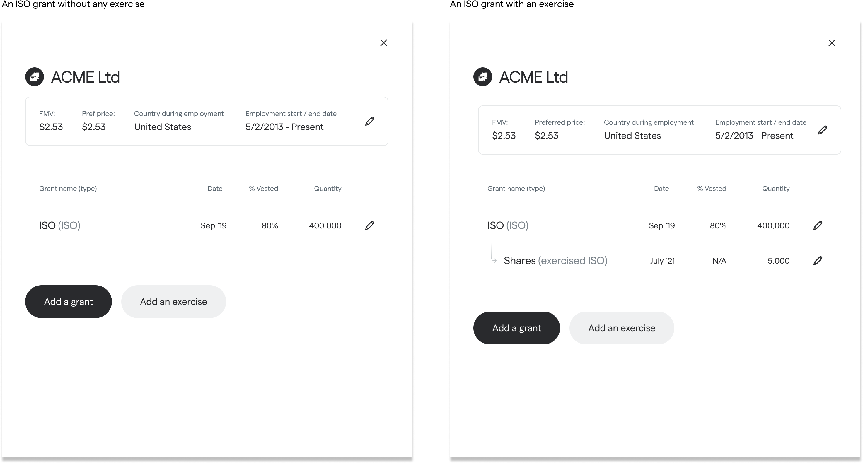 If your employer issued a share grant that is not linked to an ISO, NSO, or RSU grant or if you purchased stocks in a pre-IPO company through a secondary market transaction, please read the guide to adding shares.